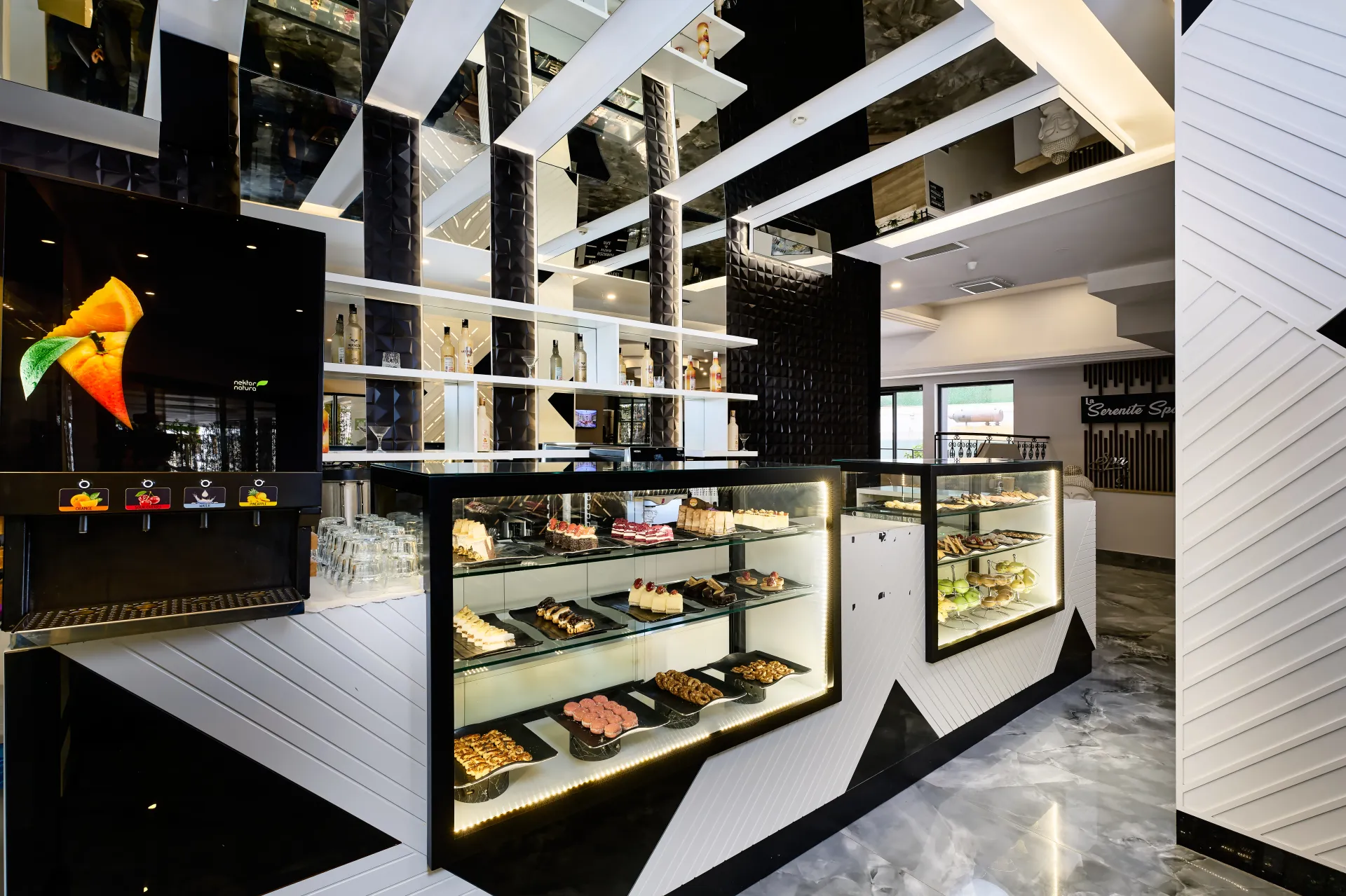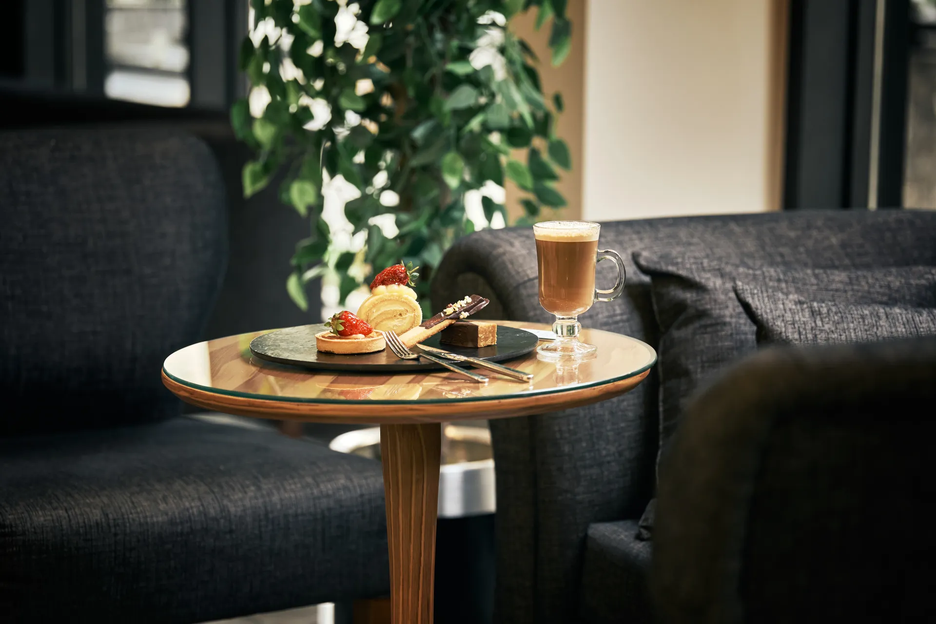 Open from 11:00 to 16:45, offering tea and coffee, a variety of cakes, pastries, and cookies, as well as light snacks and fresh fruit.